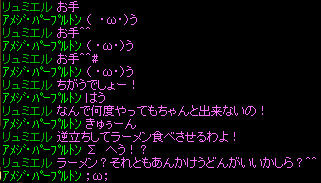 メルリィメルティメロディ 三女、白鯖在住 現在サマナー、これからの進路は決めてない子。 アル・シェリさん、ゴンドウさんによって暖かくスルーされていましたが、虎坊さんによってバレました。 ペットは鷲戦士EXのレビくんとエルフ暗殺者EXのアルフレード シュムレイ619 次男、紫鯖在住 武道家志望の女装運シフ 基本は右から現れる ちなみに619はサンディエゴの市外局番