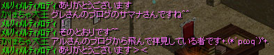 メルリィメルティメロディ 三女、白鯖在住 現在サマナー、これからの進路は決めてない子。 アル・シェリさん、ゴンドウさんによって暖かくスルーされていましたが、虎坊さんによってバレました。 ペットは鷲戦士EXのレビくんとエルフ暗殺者EXのアルフレード シュムレイ619 次男、紫鯖在住 武道家志望の女装運シフ 基本は右から現れる ちなみに619はサンディエゴの市外局番